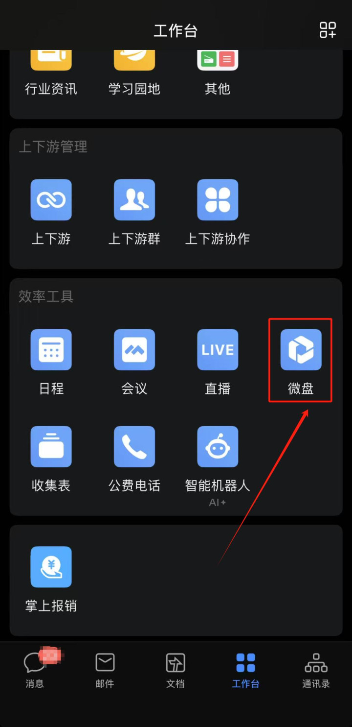 点击“微盘”选项。