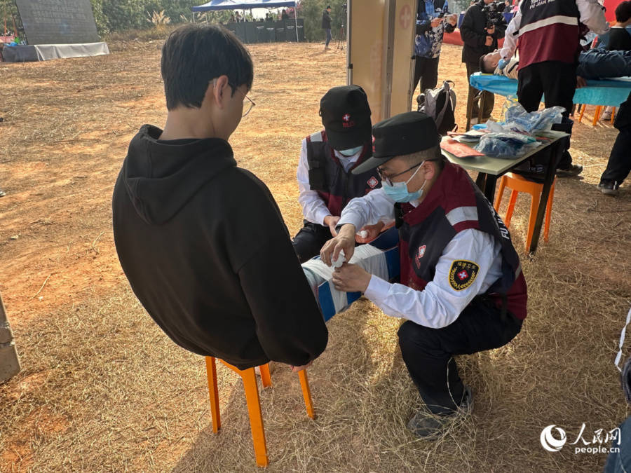 此次演练模拟一地因连续强降雨引发部分山体滑坡,不仅造成山下部分民居坍塌,还冲击了某危化品生产企业的储罐区,引发储罐爆炸,致使大量群众不同程度受伤……演练现场,各队伍分工有序、密切配合,按照预案启动、开设灾难医疗区、展开紧急医疗救援行动、应急响应终止四个阶段,有序开展启动应急响应、搭建急救分诊区、检伤分类、伤员紧急救治、中医应急救治、紧急协调空中救援力量、灾害现场防疫消杀、受灾群众心理疏导等科目演练。