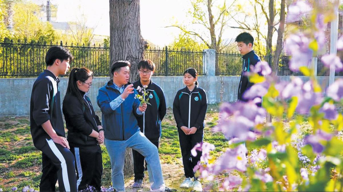 2025年4月,北师大亚太实验学校教师带领学生走进温榆河畔,探讨生物多样性。受访者供图