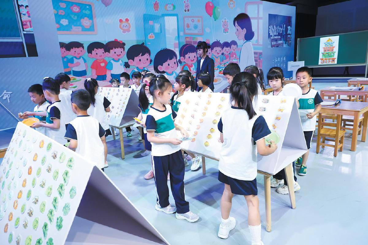 2025年6月,生命教育展示课中,学前班的学生学习膳食搭配。受访者供图
